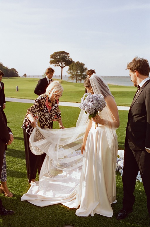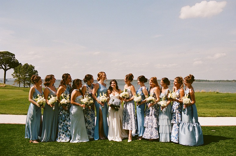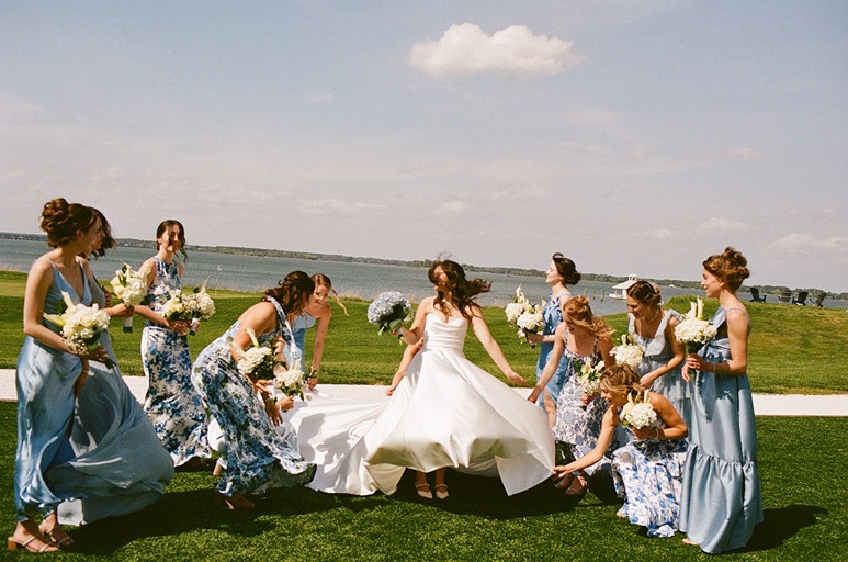 On their wedding day, Bella share a first look with her father, her bridesmaids, and her soon-to-be husband. They were married on the expansive lawn where they later mingled with guests in a sun-drenched cocktail hour before migrating over to the pavilion to dance the night away.