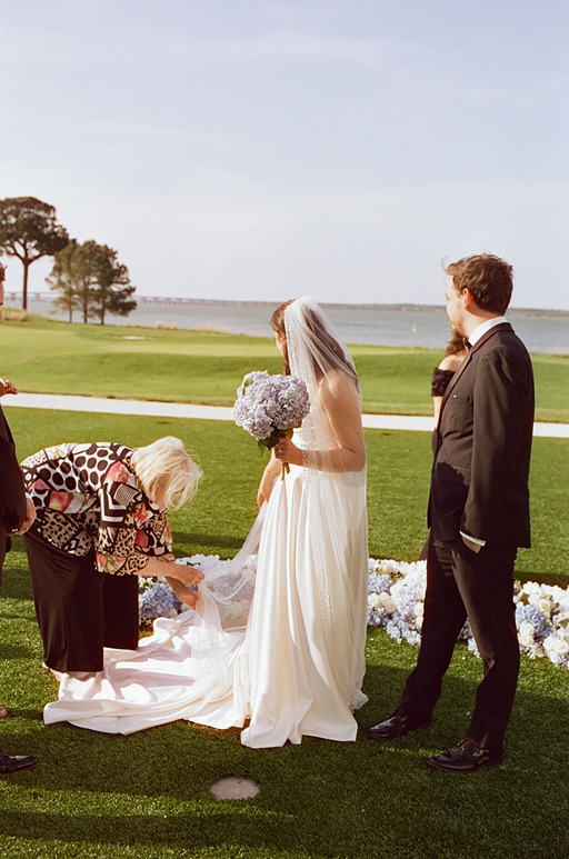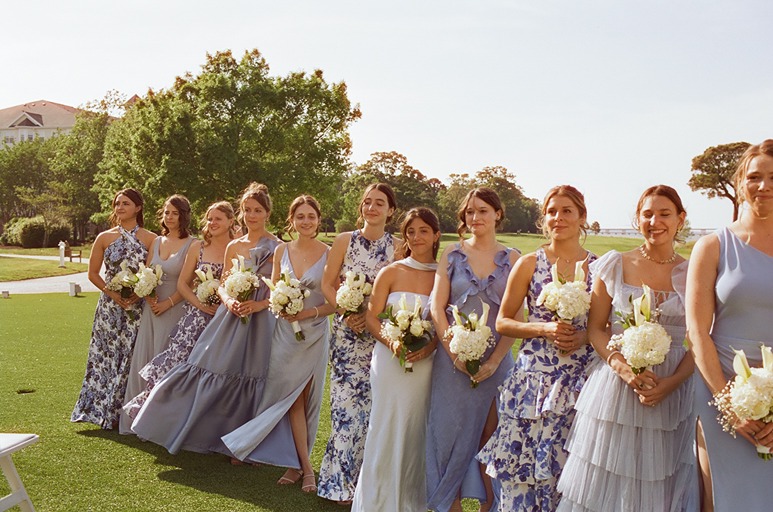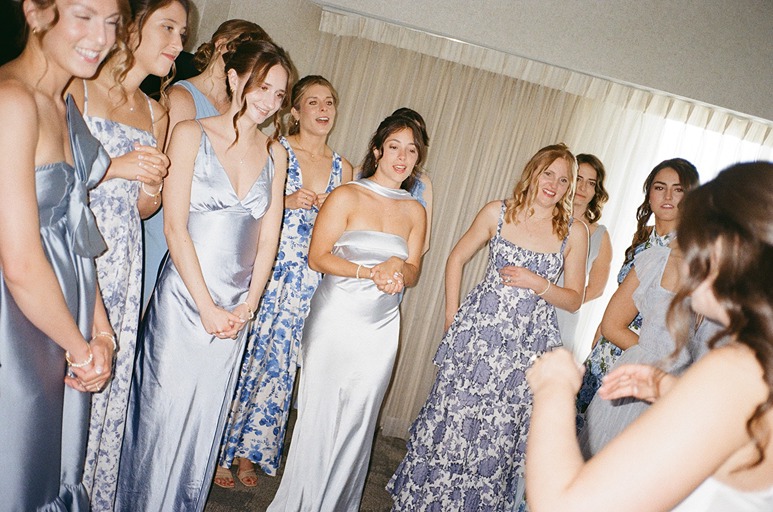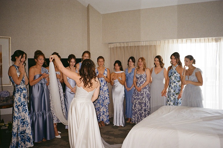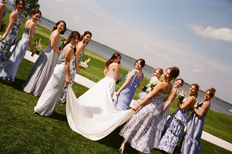 On their wedding day, Bella share a first look with her father, her bridesmaids, and her soon-to-be husband. They were married on the expansive lawn where they later mingled with guests in a sun-drenched cocktail hour before migrating over to the pavilion to dance the night away.